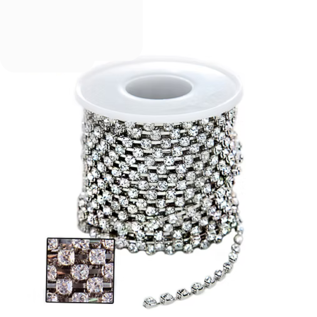 Rolo de corrente com strass para customização e decoração, perfeito para artesanato e acessórios.
