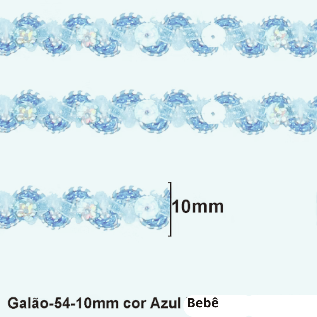 Galão Passamanaria Ref:Galao-54 Cor-177-Azul Bebê 10mm Com 20mt