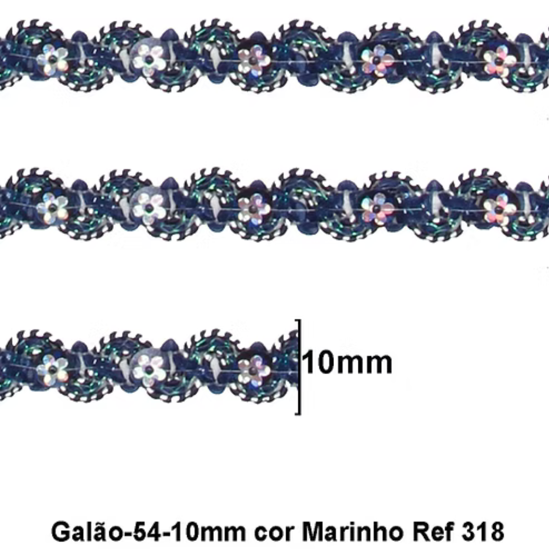 Galão Passamanaria Ref:Galao-54 Cor-318-Marinho 10mm Com 20mt