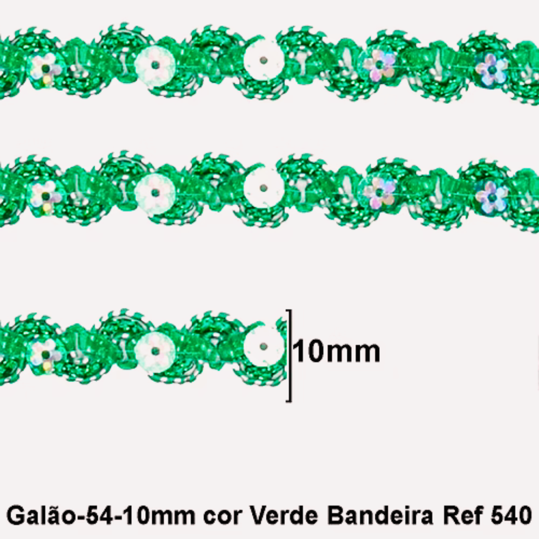 Galão Passamanaria Ref:Galao-54 Cor-540- Verde Bandeira 10mm Com 20mt