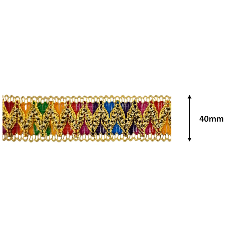 Conheça o Galão Passamanaria Ref:Galao-67 na cor ouro, com largura de 40mm e comprimento de 20 metros. Ideal para dar acabamento sofisticado em roupas, artesanatos e decorações, este galão apresenta fios dourados entrelaçados com cores vibrantes que conferem resistência e beleza. Sua textura delicada e durabilidade tornam-no perfeito para costura, customização e projetos manuais, valorizando com glamour qualquer peça ou ambiente.