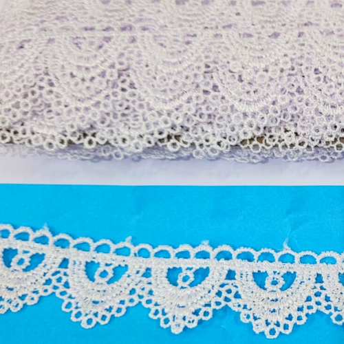 Largura Ideal: Com 3,0 cm, é considerada uma renda estreita, o que a torna perfeita para aplicações delicadas onde não se deseja um acabamento muito pesado ou largo.