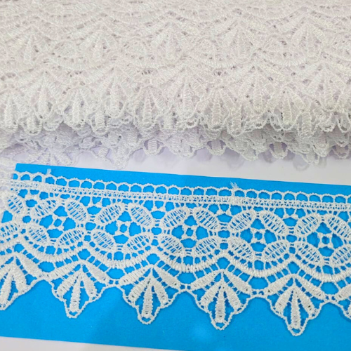 Esta Renda Guipir combina a beleza dos bordados florais com uma largura generosa, ideal para um acabamento impactante e sofisticado.