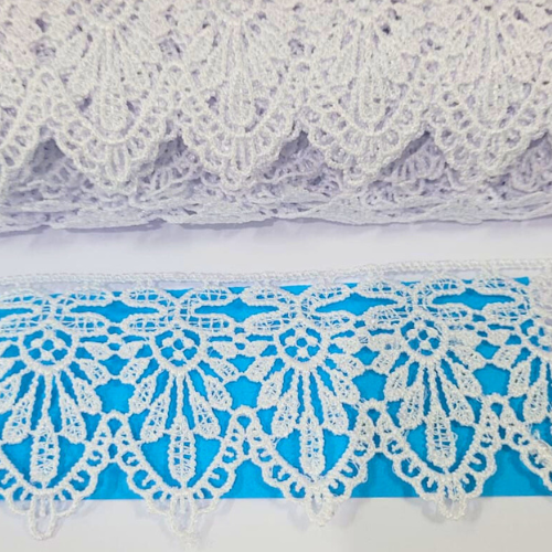 Material: O Poliéster 100% oferece a melhor durabilidade e resistência para uma renda tão larga, garantindo que o design permaneça intacto após a manipulação e lavagens.
