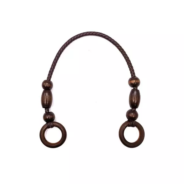 Cada alça possui acabamento com bolas decorativas e anéis de madeira nas pontas, que facilitam a fixação na bolsa ou mala. O comprimento de 46 cm é confortável para usar no ombro ou na mão, trazendo praticidade no dia a dia.