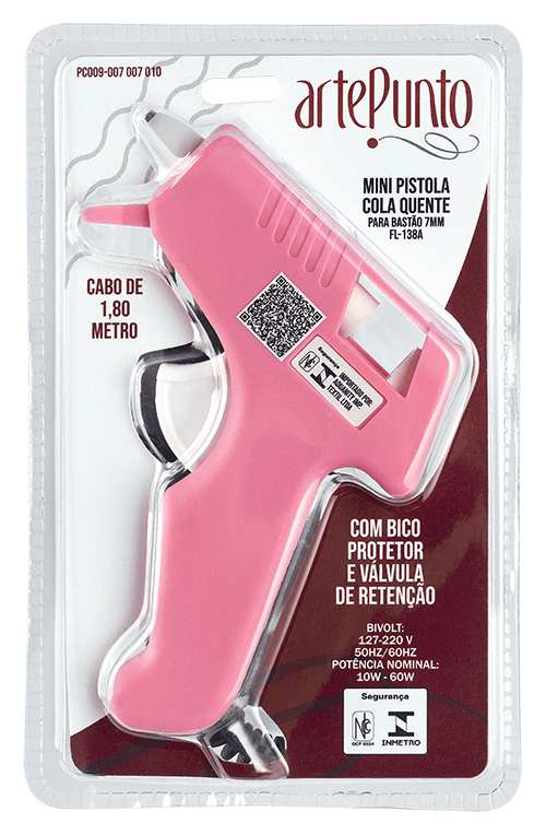 Inclui a mini pistola de cola quente cor rosa da ArtePunto.